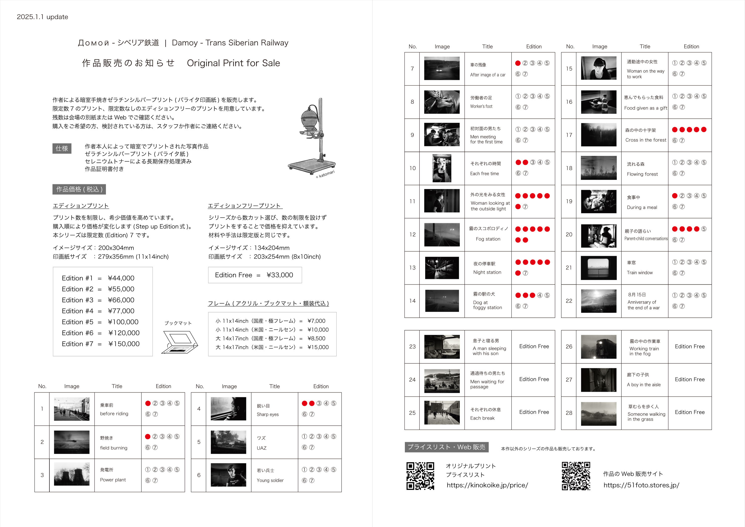 ・Price List - Домой - シベリア鉄道 | Damoy - Trans Siberian Railway _____ バライタ印画紙 | Gelatine Silver Print