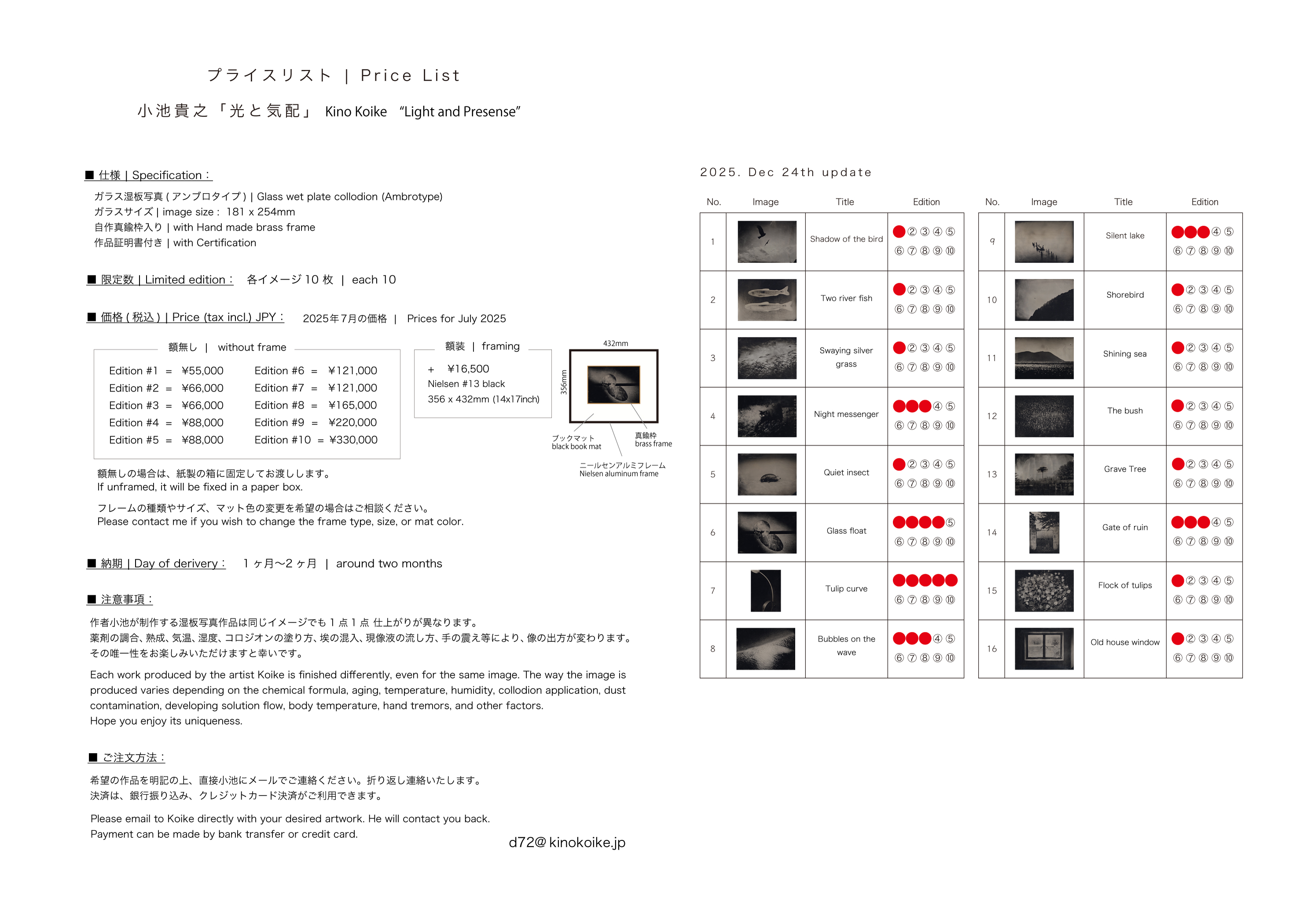 ・Price List - 浜さ | Hama sa _____ 鶏卵紙 | Albumen Print